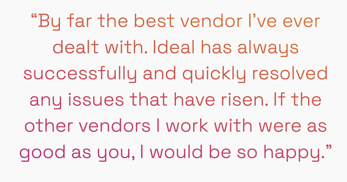 Christopher Jackson at IKEA said: “Ideal are by far the best vendor I’ve ever dealt with….and have always successfully and quickly resolved any issues that have arisen.”